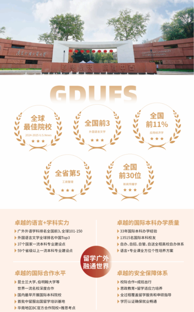 猜你喜欢 2025广东外语外贸大学南国商学院2+2国际本科招生简章2025-05-19 广东外语外贸大学国际商务专业怎么样 录取分数线多少2025-05-14 广东外语外贸大学学费多少钱一年 各专业收费标准(2025年参考)2025-05-14 广东外语外贸大学招生代码是多少 附专业代码对照表(2025参考)2025-05-08 2025广东外语外贸大学2+2国际本科报名入口 怎么报考2025-05-08 广东外语外贸大学2+2国际本科项目介绍2025-05-08 广东外语外贸大学2+2国际本科报名条件 怎么申请2025-05-08 广东外语外贸大学2+2国际本科可靠吗 是正规的吗2025-05-08 广东外语外贸大学商务英语专业怎么样 录取分数线多少2025-05-05 广东外语外贸大学2024各省录取分数线及最低位次是多少2025-05-04