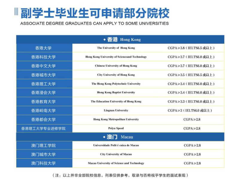 学生在北语留学服务中心学习3年,成绩合格者按照专业课程GPA及雅思等语言成绩可申请港澳及海外名校学士,学士毕业免考直申港澳或海外院校硕士。