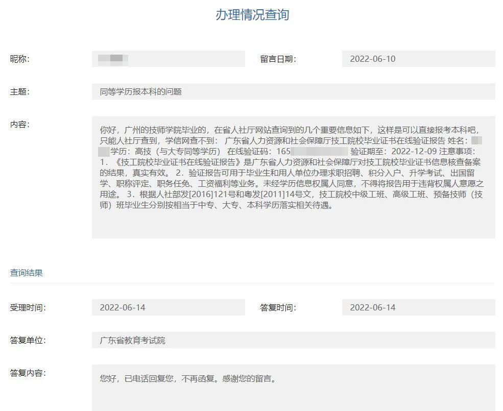 那么,问题来了,高级技工毕业证书(与大专同等学历)是否意味着可以直接报考成人教育本科呢?为了了解清楚这个问题,小编专门问了广东省教育考试院的领导,并得到电复。