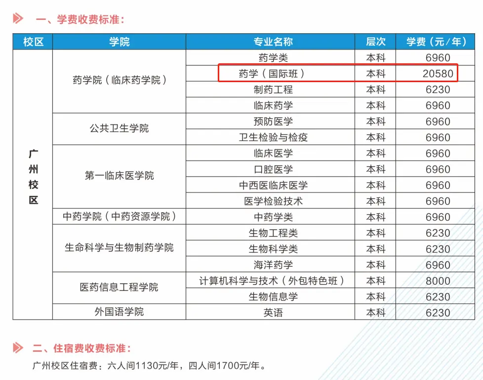 广东药科大学中外合作办学学费:国际班20580元/年。以下为大家整理的是各专业收费标准,希望对大家有所帮助,如有变动,以学校最新公布的信息为准。