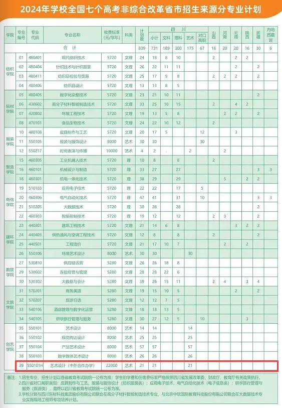 成都纺织高等专科学校中外合作办学专业有艺术设计等,以下是具体名单一览表,供大家参考,由于专业设置可能会变动,正式填报时需要以学校最新公布的数据为准。