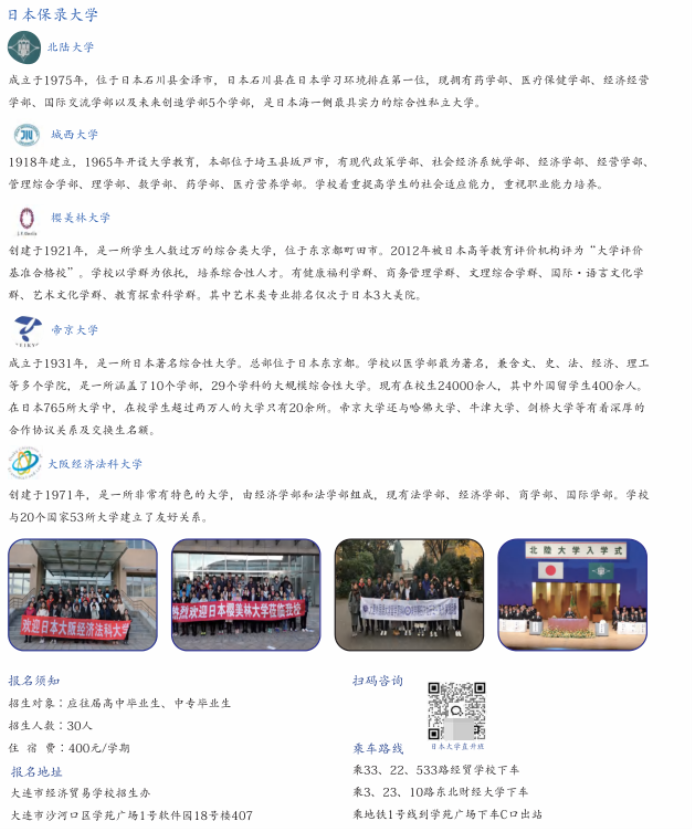 猜你喜欢 日本大学国际本科班好不好 有哪些学校可以读2025-04-30 2025日本大学直升班保录大学名单及招生人数2025-04-16 2024中国最认可的日本大学 哪些学校认可度高2024-06-05 日本大学中外合作学费贵吗 大概多少钱一年2024-05-08 日本大学留学申请条件2021-11-30 去九州外国语学院留学好不好2017-07-05 日本九州外国语学院怎么样2017-07-05 去日本留学哪些大学有名2017-06-30 日本大学留学费用 学费生活费多少钱2017-05-27 2022年日本大学优势专业 什么专业好2021-12-06