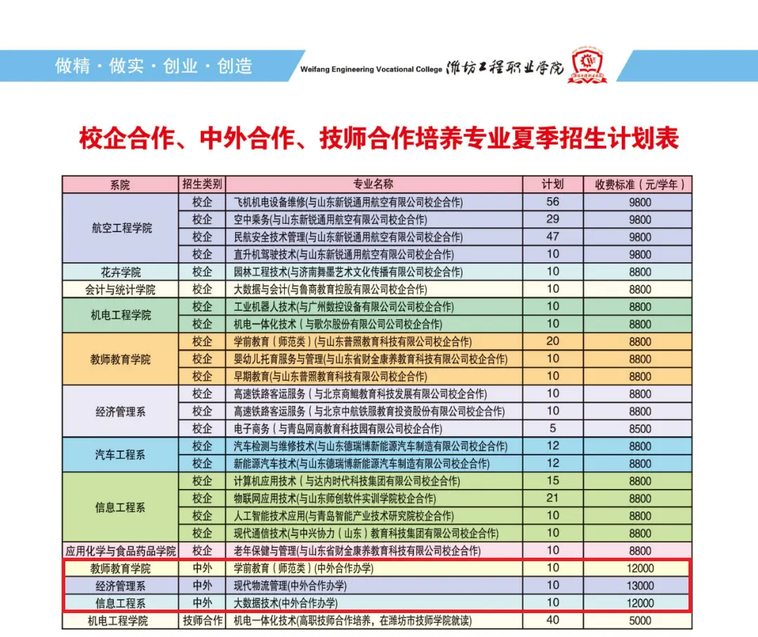 潍坊工程职业学院中外合作办学专业有学前教育、现代物流管理、大数据技术等,以下是具体名单一览表,供大家参考,由于专业设置可能会变动,正式填报时需要以学校最新公布的数据为准。