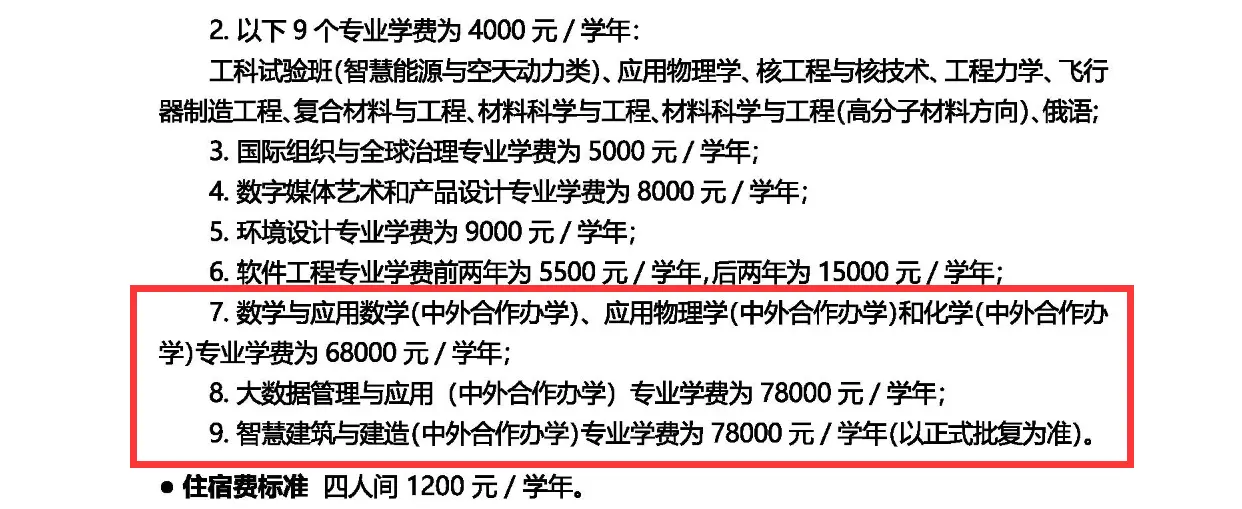哈尔滨工业大学中外合作办学学费有68000、78000元/学年等不同标准;住宿费:四人间1200元/学年。以下为大家整理的是各专业收费标准,希望对大家有所帮助,如有变动,以学校最新公布的信息为准。