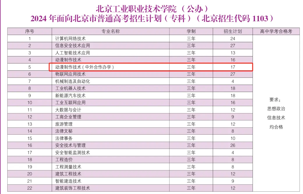 北京工业职业技术学院中外合作办学专业有动漫制作技术等,以下是具体名单一览表,供大家参考,由于专业设置可能会变动,正式填报时需要以学校最新公布的数据为准。