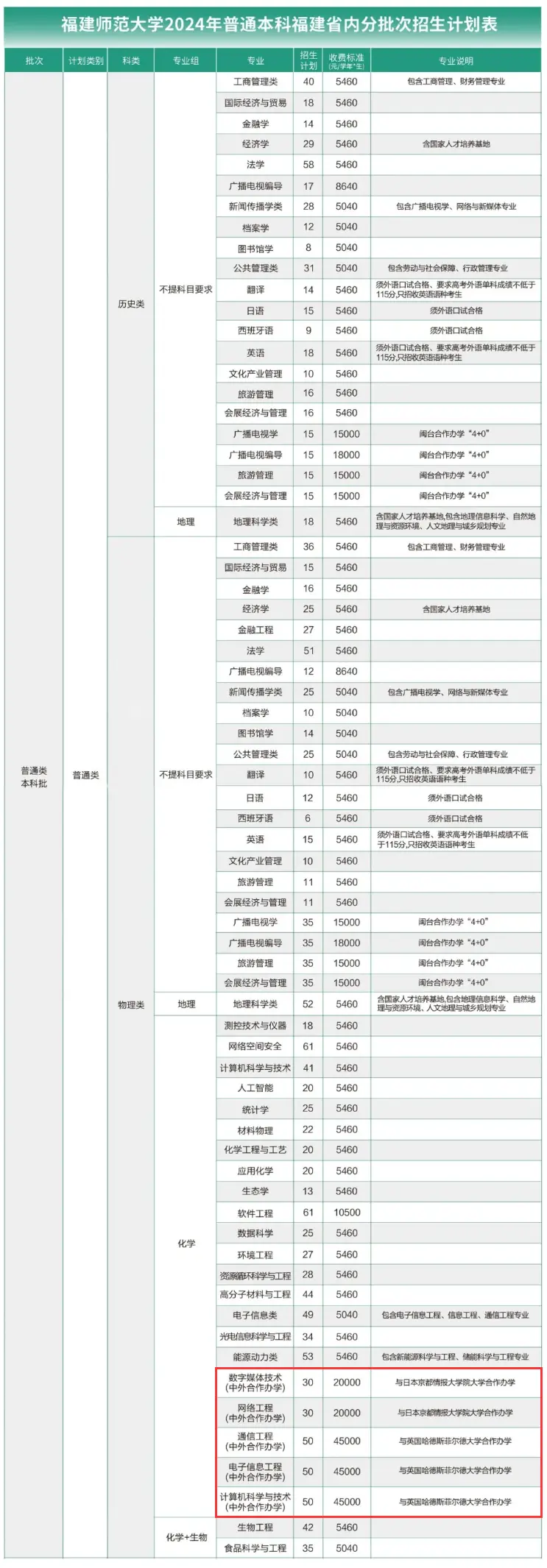 2、学校招生专业录取规则及专业录取要求、体检要求见《福建师范大学2024年普通高考招生章程》。