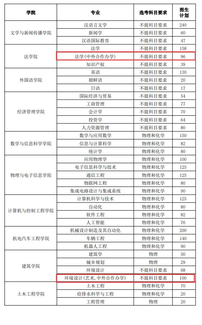 烟台大学中外合作办学专业有法学、环境设计、材料科学与工程、环境科学与工程、环保设备工程、车辆工程等,以下是具体名单一览表,供大家参考,由于专业设置可能会变动,正式填报时需要以学校最新公布的数据为准。