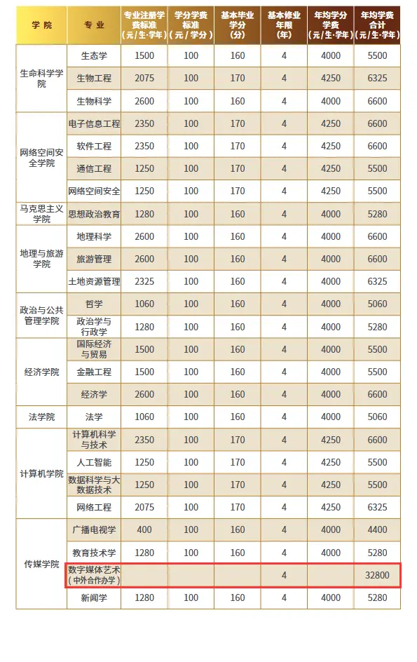 2024曲阜师范大学中外合作办学专业学费有32800、36000元/生·学年等不同标准;住宿费:每生每学年600-1200元。以下为大家整理的是各专业收费标准,希望对大家有所帮助,如有变动,以学校最新公布的信息为准。