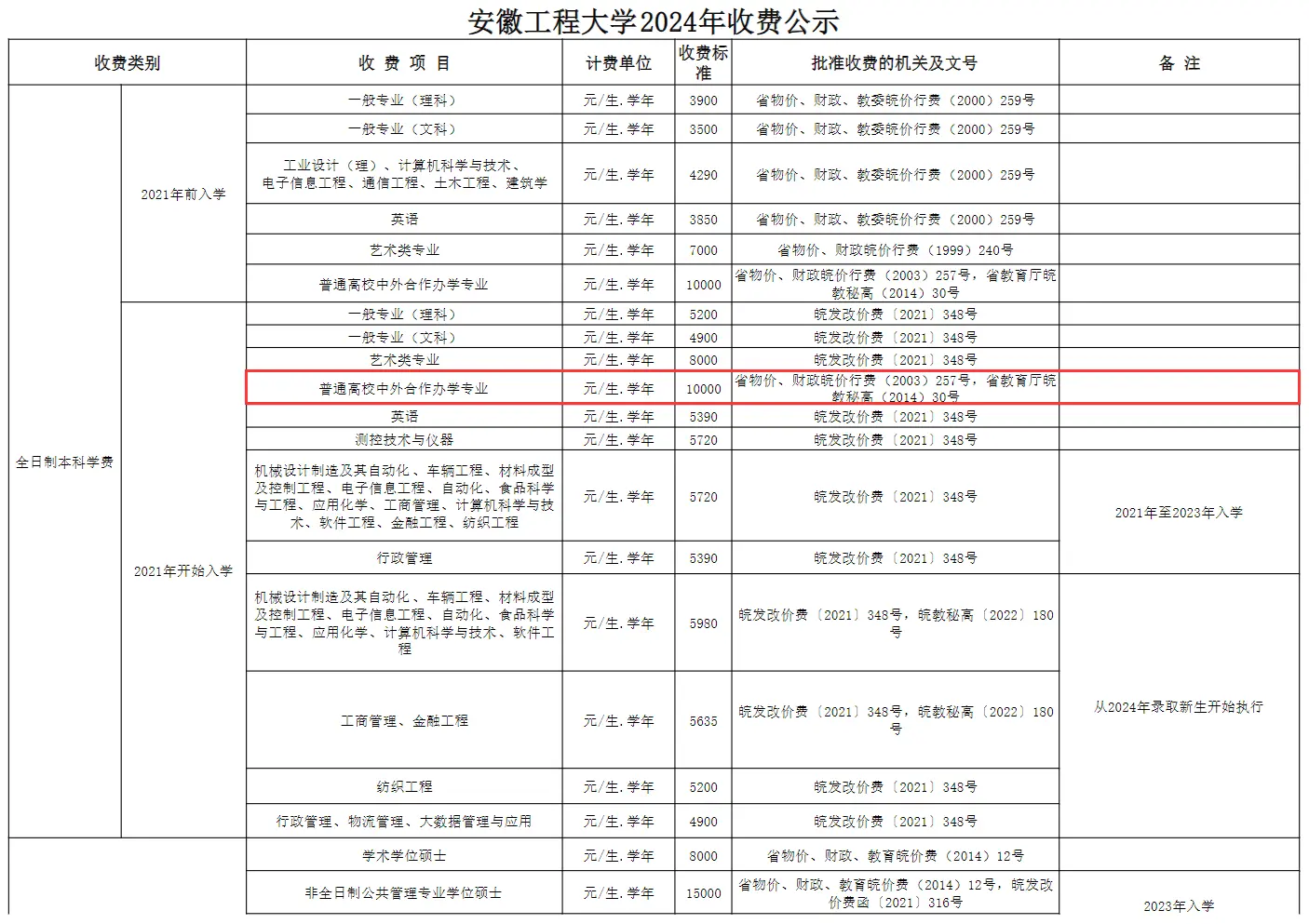 安徽工程大学中外合作办学学费是10000元/生·学年。安徽工程大学中外合作办学除了国内学费外,出国学习的花销也不小。为了帮大家更好地了解费用情况,本文将详细介绍安徽工程大学中外合作办学的学费标准,以及各专业的具体收费。如果你正考虑报考这些项目,不妨仔细看看,提前做好预算规划。
